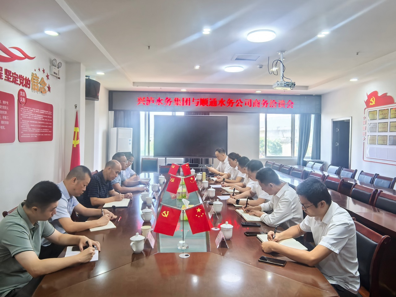 9月25日,瀘州市興瀘水務(wù)(集團(tuán))股份有限公司到瀘縣順通水務(wù)有限公司開(kāi)展洽談。集團(tuán)公司總經(jīng)理助理、明生公司總經(jīng)理張可、順通公司、大數(shù)據(jù)公司、市政公司相關(guān)負(fù)責(zé)人參加。